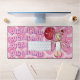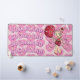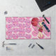 A desk mat with my chibi design with a dessert theme. She comes from the land of sweets and is a cute and adorable anime girl. wearing a chocolate bonbon hat and a huge lollipop. Additionally, one of my designs with a pattern background is the sprinkle doughnut in the shape of a heart.