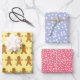 NewParkLane - Whimsical Christmas wrapping paper sheets with trendy Candy Christmas colours, one with a cute gingerbread man pattern against a yellow background, one with lavendern and white polkadots and another with a fun candy pink and white polkadots.