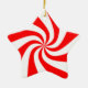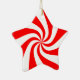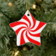 Christmas ornament shown in a star shape with a cute candy peppermint print.