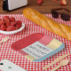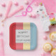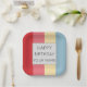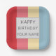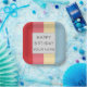A cool candy-coloured vertical striped pattern and a Happy Birthday text template. Click personalise to add your name.