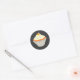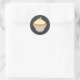 A halloween sticker featuring an illustration of a cupcake topped with a piece of candy corn over a dark grey background. Look for matching halloween party invitations at Jill's Paperie.