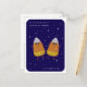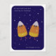 Candy Corn Duo "Counting Our Blessings" Fall Holiday Postcard - Send warm Thanksgiving wishes with this delightful postcard featuring two sweet candy corn characters lying under a starry blue night sky. The heartfelt message reads, "We were just lying here counting our blessings and thought of you," making it a perfect way to share gratitude and love this fall.