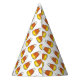 Party hat features an original marker illustration of a row of colourful candy corn candies. Great for Thanksgiving or Halloween.