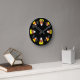 A collage of candy corn png. images re-sized and rotated, placed on a Zazzle background colour and under a black, glowing clock face. Everything is customisable.