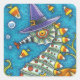 CANDY CORN SEAHORSE WITCH, UNDER THE SEA HALLOWEEN SQUARE STICKER