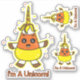 This yellow, orange, and white candy corn with an adorable, cute, kawaii face has found itself happily transformed into a unicorn! It has hooves now, a candy coloured mane, and a yellow and orange striped horn with a white tip. Dreams really do come true. This funny and cute design is great for the fall and especially for Halloween.