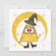 Candy Corn never but sweeter! Candy Corn Witch T-shirts, hoodies, trick or treat tote bags, mugs, cards, stickers, magnets, buttons, and other Halloween apparel and gifts with a cute candy corn with eyes, arms, legs, and a witch hat on a stars and harvest moon background.