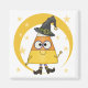 Candy Corn never but sweeter! Candy Corn Witch T-shirts, hoodies, trick or treat tote bags, mugs, cards, stickers, magnets, buttons, and other Halloween apparel and gifts with a cute candy corn with eyes, arms, legs, and a witch hat on a stars and harvest moon background.