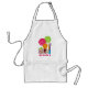 An apron featuring an illustration of a jar of gumballs, three lollipops, stick candy, a piece of chocolate, and a cupcake. Personalise with your name.