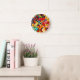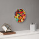 I ordered a small size of Tea Time Green & White Kitchen clock. It's just so cute and matches my kitchen decor!! The picture quality is better than I thought considering most of online orders do not meet buyers' expectations. It weighs only less than a pound. Excellent printing. You are not going to be embarrassed when you give this to your family and friends for a gift. I have failed many times on online orders for poor quality once i received them, but this one surprised me!!
