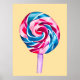 Funky colourful giant lollipop watercolor original art illustration of candy on a stick. Pink, purple and blue.