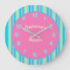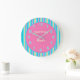 A colourful candy striped clock with pink centre plus matching numerals This small children's clock is perfect for learning to tell the time. Added feature is the name Gemma. Customise to change the child's name.