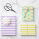 Pastel candy stripes in yellow and purple plus lollipop pattern on sweet gift wrap set.