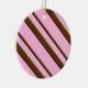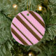 Diagonal candy stripes of dark chocolate brown on a light strawberry pink background ceramic ornament