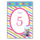 A cute and sweet candy themed table place card. Featuring stripes and colourful candy. Easily personalise for your birthday party, Bat Mitzvah and more!
