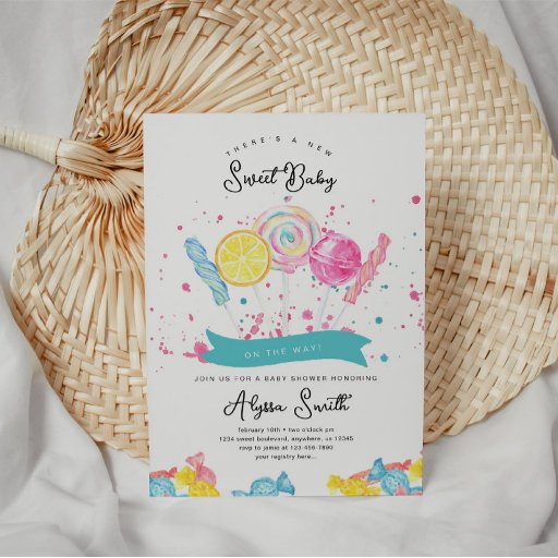 Candy baby shower or birthday sticker with lots of sweets. Perfect for a candy shop themed event.