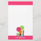 Stationery featuring an illustration of a jar of gumballs, three lollipops, stick candy, a piece of chocolate, and a cupcake. Personalise with your name.