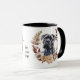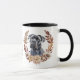 A pretty autumn wreath in tones of cinnamon brown, tan, and cream surround the watercolor image of a beautiful black Cane Corso Dog. The image is printed twice on the mug, with your custom text between them.