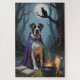 Step into a magical Halloween night with this whimsical oil painting featuring an adorable pup dressed in a mini witch cloak, seated beside a bubbling cauldron in a shadowy forest. Surrounded by glowing potions, old spellbooks, and twinkling magical sparks, the scene is filled with mystery and charm. Rich painterly textures and deep Halloween hues create a cosy, enchanted vibe perfect for spooky season lovers.