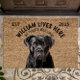 This welcome mat can be personalised with your dog’s name, the slogan can also be changed or you could use a picture of your own dog (make sure it's transparent). Text reads: William Lives Here…. All treats welcome.