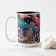 A visually captivating mug featuring a psychedelic art-inspired design that bursts with energy and movement. This intricate composition includes swirling shapes, bold patterns, and vibrant colors, all seamlessly intertwined. Amongst the chaos, a hidden face emerges, symbolizing themes of identity and self-expression. The dynamic blend of vivid gradients and organic textures adds depth and curiosity to the piece, making it a perfect conversation starter. Ideal for art enthusiasts and those who appreciate layered, thought-provoking designs.