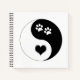 A black and white Yin Yang symbol altered to represent the love of our family dog by using a black and white heart and paw prints. Our pets become family and are part of the loving balance of our hearts and home.