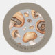 Modern classic round label features a stylish illustration of mushrooms with customisable text. Shown with 'MUSHROOMS and date presented in modern font on a complimentary round border, you can customise using the fields provided. Ideal for your gardening, cooking, canning or decoration.