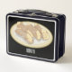 This is a standard metal lunchbox that appears to work just fine. We designed this box ourselves with an uploaded photo and custom text on the front and back. It looks absolutely beautiful except the front of the lunchbox is not centered like it shows in the photo. The print borders don't align with the inset flat part of the box where the preview photo online showed it perfectly centered in there. The back looks nice and centered though.
