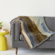 A quality printed throw has its advantages. This is a much finer weave throw than its loopier cousins, and though lighter, it is worth the investment for custom room accessorizing. The back is much prettier than the typical brown, and the fringe on the long sides very vivid, the selvage nicely done. Before photographing, I washed the throw in cold water, delicate, with a thicker woven throw the same size. On tumble dry low, this throw was dry in half the time as the other. This is a very practical quality if you use throws for furniture covers or to wrap up in frequently. The sleekness of the fabric makes it a great layer for accenting or protecting without the feeling of sitting on too much stuff. Perfect for napping or when you feel a light chill coming on. The color printing is beautiful and on this fabric, matched the design and color of my Photoshop image. This is an advantage for blending room fabrics and colors. The fringe on the short sides prints the colors from the design image and therefore varies from the side fringe. I streaked a white fractal line through the plaid pattern to give the illusion of weaving. This printed as crisp as an illusory thread, and put some white in the short side fringe, showing another advantage of print vs loomed- for artistic purposes, line lines, detail, and color integrity can be planned and preserved. My loomed throws have color limitations and more of a needlepoint texture. Print throws reproduce an exact image. The throw felt a little stiff straight out of the package, but this went away in the first delicate wash. Of course I searched the wash water for ink or bleeding and there was none.