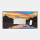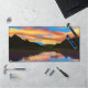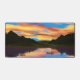 A canoe crossing a mountain lake reflecting the beautiful oranges and blues of a colourful sunset. Add your own text.