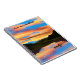 A canoe crossing a mountain lake reflecting the beautiful oranges and blues of a colourful sunset. Add your own text.