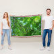 Throw blanket in a pattern of leafy green tree branches silhouetted against a blue summer sky - digitally enhanced photography