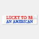 I don't know about you, but those bumper stickers proclaiming "Proud to be American" are like fingernails on a chalkboard for me. Recent immigrants who have gone through the draconian INS process (and very expensive fees) of becoming a U.S. citizen can and should be proud. The rest of us were just born lucky.