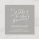 Simple modern wedding live video steaming enclosure card with your own photo on the reverse. Simple contemporary script text gray and white design. Personalize with your own wedding streaming details, brides, and grooms names and details for guests who aren't able to attend in person to be able to watch and take part from a distance. Matching mono script text wedding products and other color options are available in the store. © Original design by www.mylittleedenweddings.com