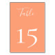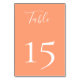 Trendy cantaloupe peach, solid colour table number card. Designed to match our Chic Peach Botanical Collection.
