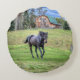Cantering Black Percheron Horse Equine Photo 2 Round Cushion