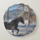Cantering Black Percheron Horse & Snow Photo 2 Round Cushion