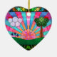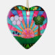 A digital stained-glass design in the Art Deco style popular in the 20th century. The widely-used sunburst motif is central, rising behind a green landscape balanced by a tree on one side and clouds and flowers on the other. Geometric shapes are used to emphasize the symmetry of the scene, with both the tree and clouds made of overlapping circles. Various brightly coloured fractals give the "glass" texture and interest. The scene is framed in black ironwork and diamond-shaped blocks frosted with dark but vivid fractal patterns.