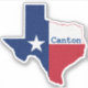 Canton Texas sticker with vintage look TX flag design and state shape in durable, waterproof finish.