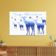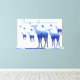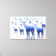 This canvas wall art has the look of white washed boards of a rustic charmer with blue deer/elk with an unusual landscape scene on them in blue tones. Merry Christmas text at top.
