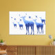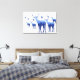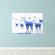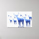This canvas wall art has the look of white washed boards of a rustic charmer with blue deer/elk with an unusual landscape scene on them in blue tones.