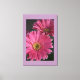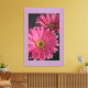 Canvas Art shown with a photo print of pink daisies on a lavender canvas background.