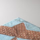 Quilt block in brown and blue "castle" pattern. The central "castle" is a brown star shape, surrounded by the "6 sided wall" with the "watch towers" extending out from the middle of the walls.