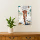 This painterly, loose-style artwork captures the tanned legs of a cowgirl in a white eyelet skirt and cowboy boots, energetically walking through crashing waves on a beach. The dynamic motion of the waves, paired with teals, blues, and taupe tones, infuses the piece with energy and adventure. The contrast of rugged western style with the raw power of the ocean creates a striking visual that is perfect for those seeking bold, expressive artwork.