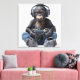 This realistic chimp illustration features a cool chimp wearing denim jeans and headphones, sitting on the ground with a video game controller in his hands. The crisp white background makes the playful design pop, blending animal charm with modern gamer style. Perfect for kids, teens, or game room decor, it adds a fun and unique touch to any space. This quirky artwork makes an ideal gift for animal lovers, gamers, or anyone who enjoys playful, personality-filled art. A great conversation starter, it’s perfect for bedrooms, dorms, or gaming lounges.