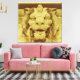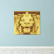 Architectural detail on the side of a public building. This Lion's head is a golden colour with shadows and weather stains highlighting the features of eyes, mouth and mane.
