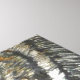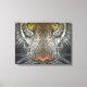 Tiger with yellow eyes, grey, black and white stripes, with red nose and orange forehead.. Original image of half face, is replicated, flipping one image to create a full face. Original artwork by Nora Chen.