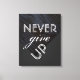 canvas print with text quote never give up on grey