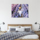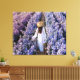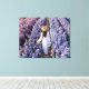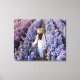 This stretched canvas wall art is shown with a photo print of a beautiful purple flower field with women in white.