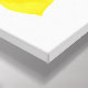 Wrapped canvas art is shown with a graphic print of pretty yellow daffodils on a white background colour.